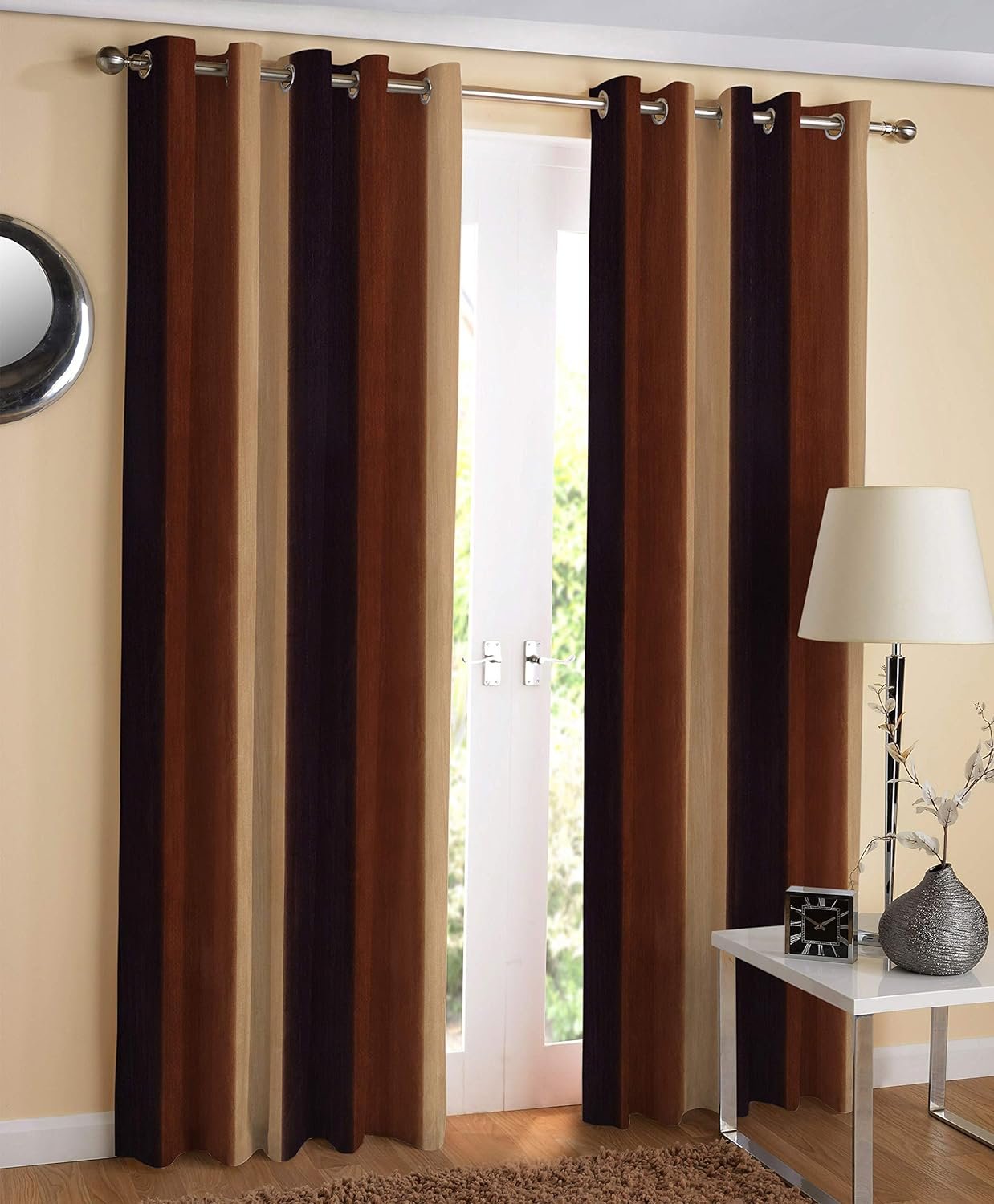Make your home look grand by bringing home RD Trend exclusively modern and contemporary style defined Curtains. RD Trend curtains are made from 100% polyester which has a natural resistance to shrinkage and wrinkles making them easy to maintain. It gives the much desired sassy look. These contemporary eyelet curtains slide easily, so when you pull them apart first thing in the morning to welcome the bright rays of the sun, you want to wish the whole world good morning and when you pull them closer in the evening, you make the most of the special moment. Delightful beauty rendered by soothing prints.