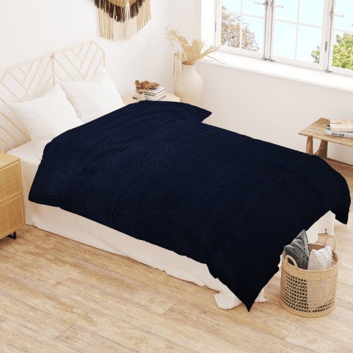 Winter Microfiber Flannel Reversible Double Bed Printed AC Comforter (Navy Blue)